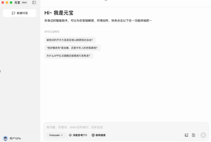 从功能上看,腾讯元宝电脑版具备与手机端、网页端相同的智能对话能力。用户不仅能通过DeepSeek-R1满血版和推理模型混元T1进行深度思考,也可以通过DeepSeek-V3和腾讯混元TurboS快速获得答案,满足不同场景下的需求。